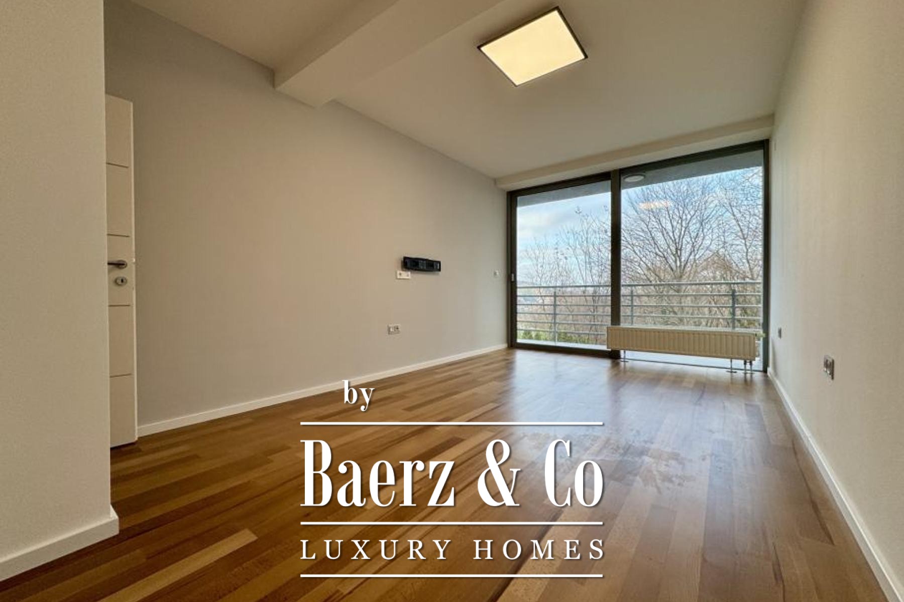 Вход через частный крытый портал создает ощущение уединения, а двухуровневый гараж, кладовая и многофункциональное пространство для домашнего кинотеатра, спа или фитнеса соответствуют стремлениям современного образа жизни. На первом этаже расположены три спальни, каждая с отдельной террасой и зелеными пейзажами, а также две ванные комнаты, кондиционер и электрические жалюзи для комфорта и приватности. Основной жилой этаж отличается обилием естественного света благодаря панорамному остеклению с выходом на несколько террас. Здесь панорамный вид на Загреб дополняется крытой террасой для жизни в формате indoor-outdoor, отдельной кухней и еще одной ванной с ванной.