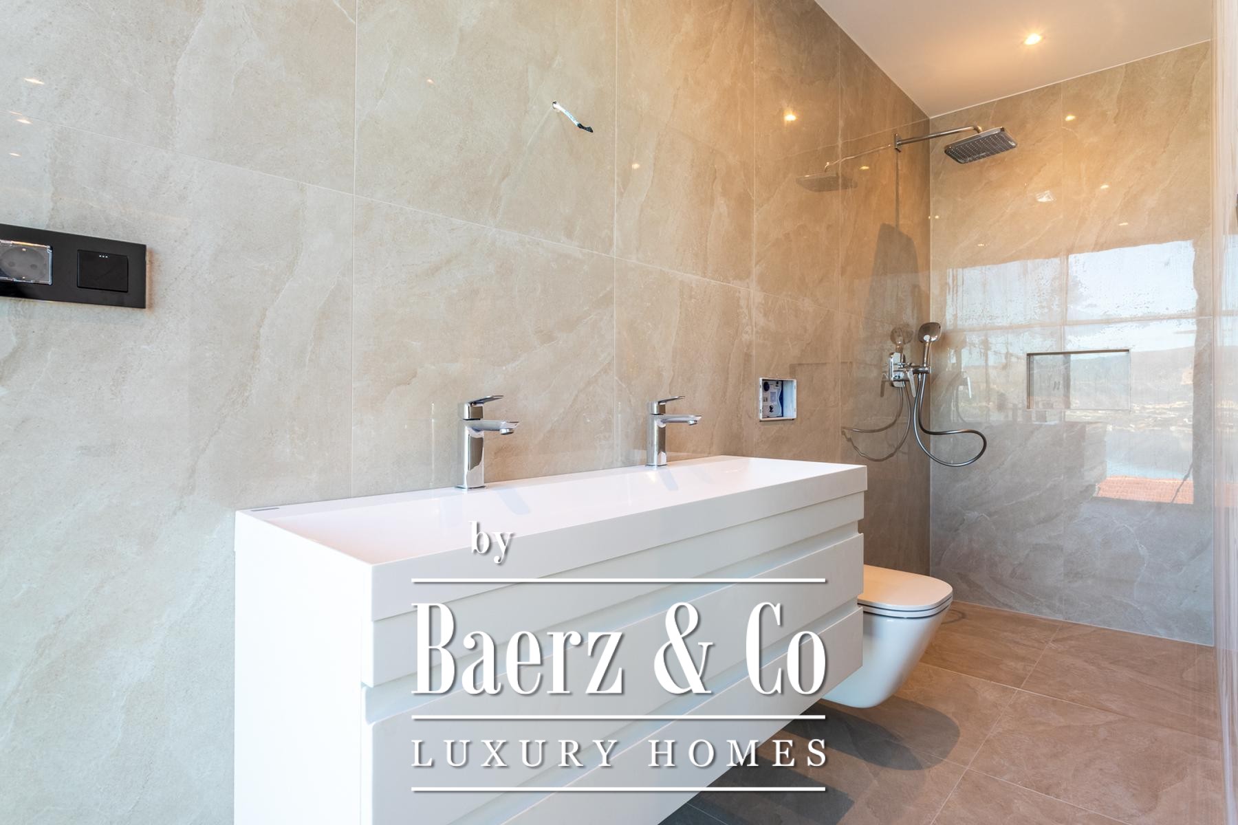 На участке площадью 500 м² сад и внешние пространства полностью благоустроены и тщательно ухожены. Вилла продается без мебели, предоставляя будущему владельцу возможность реализовать свое видение в этом современном прибрежном убежище. Данная вилла — это и архитектурное высказывание, и приватный горизонт над морем.