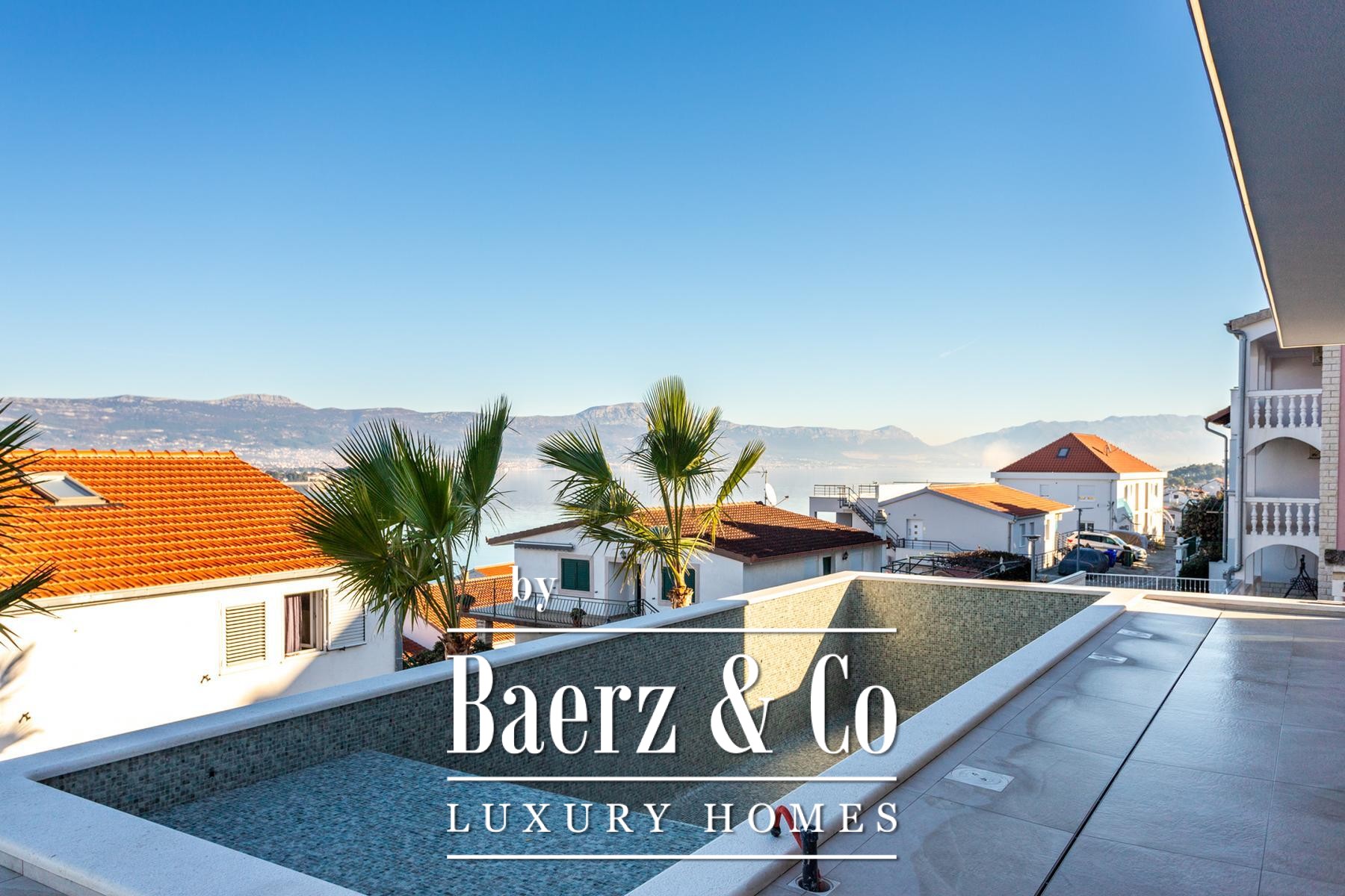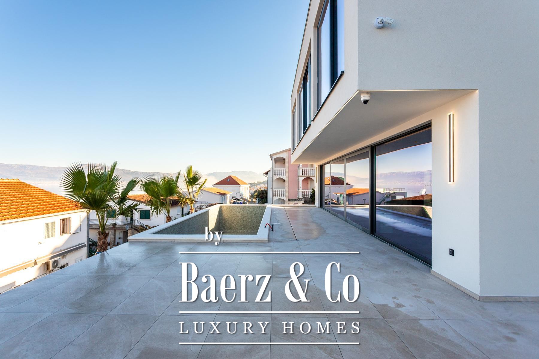 Вилла Trogir Okolica предлагает беспрепятственный вид на море с возвышенной позиции в районе Мастринка, Чиово, Хорватия. Новопостроенная вилла имеет 278 м² жилой площади, организованной на трех уровнях, где каждая деталь отражает продуманный дизайн.