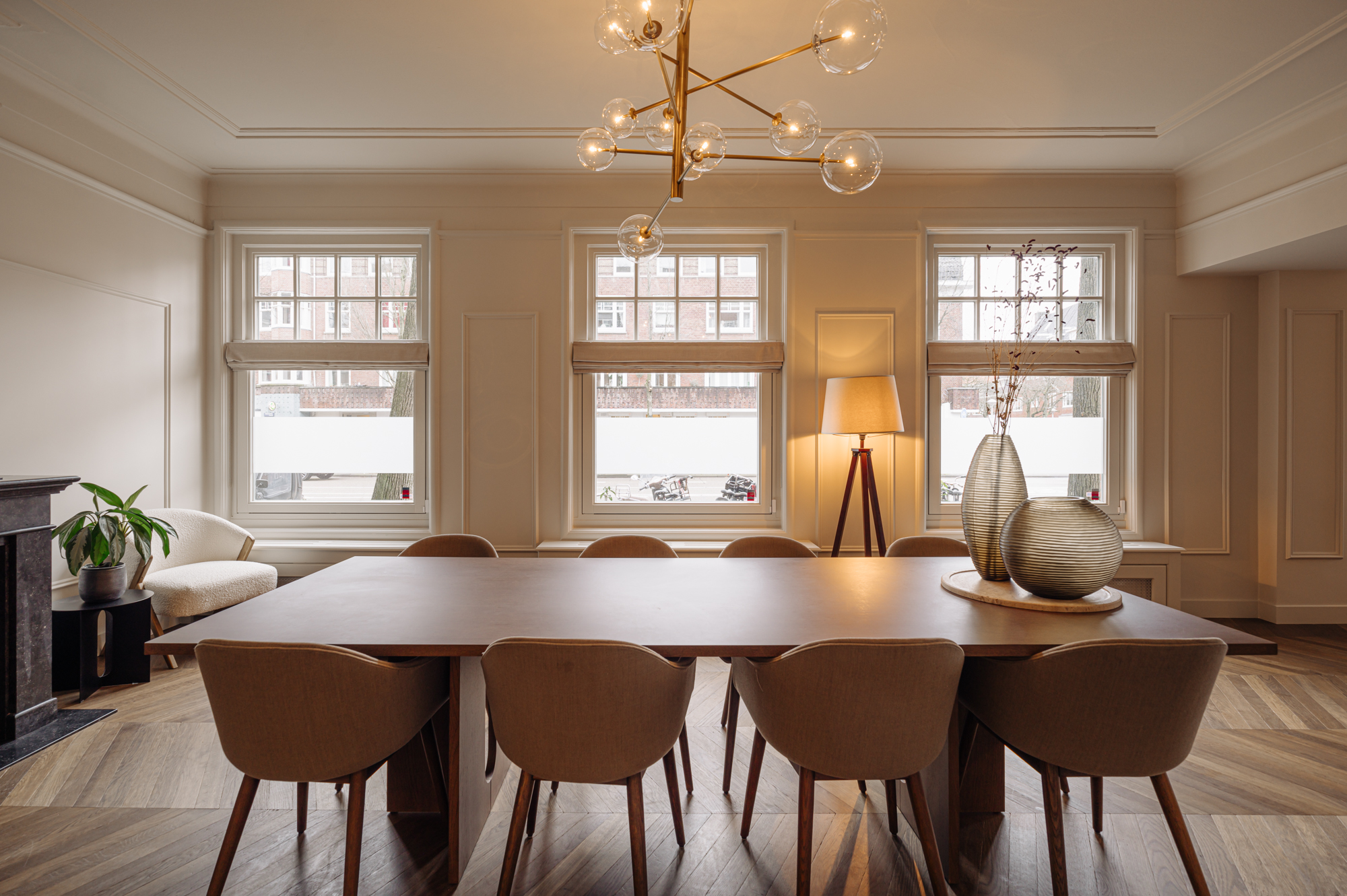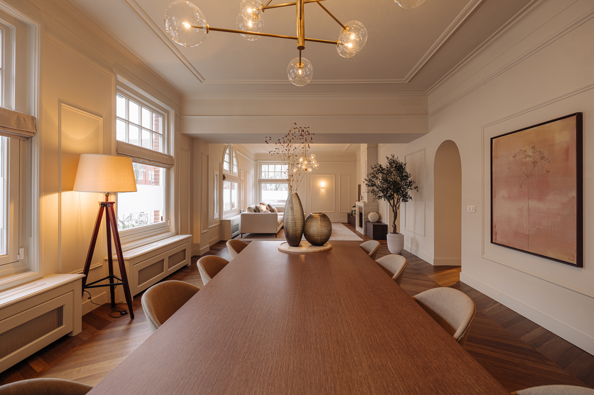 这套位于阿姆斯特丹南区的底层公寓,提供277平方米经过精心重塑的雅致生活空间,将经典细节与现代奢华升级巧妙融合。五间宽敞卧室与三间高雅浴室,兼顾开阔感与私密性。客厅以温润的匈牙利鱼骨拼地板和两座壁炉为特色,自然过渡至定制厨房,厨房配备大理石台面、手工橱柜和甄选嵌入式电器。每个细节都流露出低调的高级感与舒适氛围。