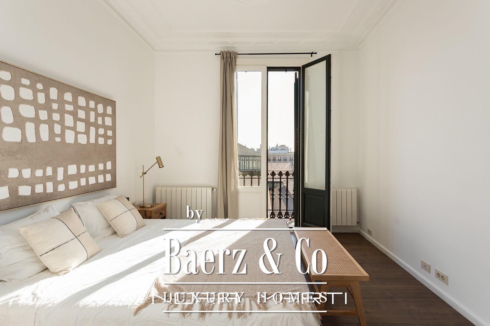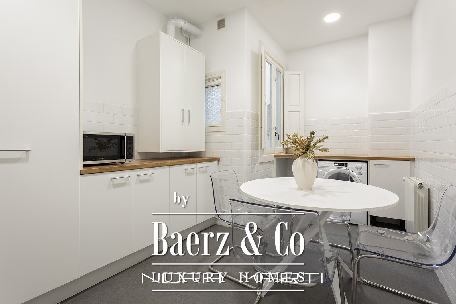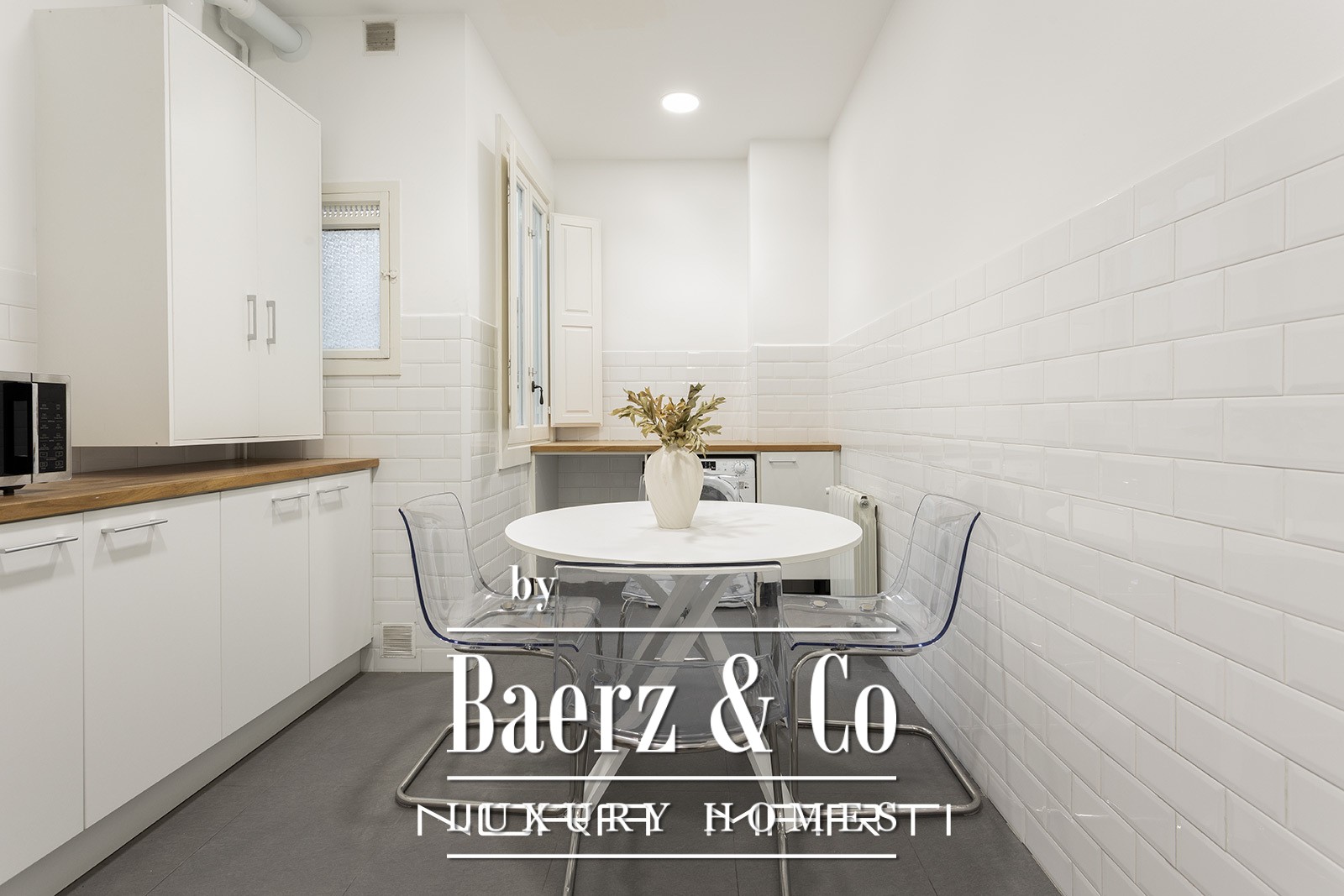 公寓面积152平方米,经过全面翻新,巧妙融合了当代美学与历史结构。室内采用精致现代的家具,营造出清晰统一之感,为低调的都市生活定下基调。布局设有三间卧室(包括一间双人房和两间单人房)及两间浴室,有效平衡了私密和社交空间。客厅的高大窗户为该年代的建筑特色,自然采光充盈室内,在优越的朝向和温润的实木地板的映衬下更显明亮。厨房设施齐全,并设有早餐区,提升了日常生活的舒适度。