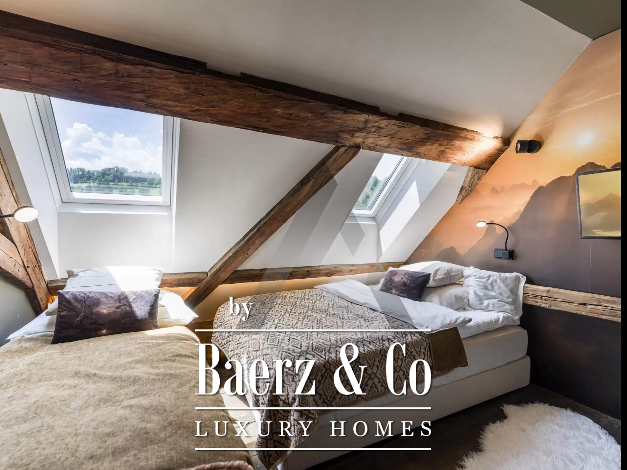 三间卧室确保宁静和私密,配备浴室、客用洗手间及红外线桑拿房。裸露的横梁与再生木材赋予空间真实质感,实木地板彰显质感与格调。主起居区上方设有夹层,采光充裕,进一步提升空间韵律。