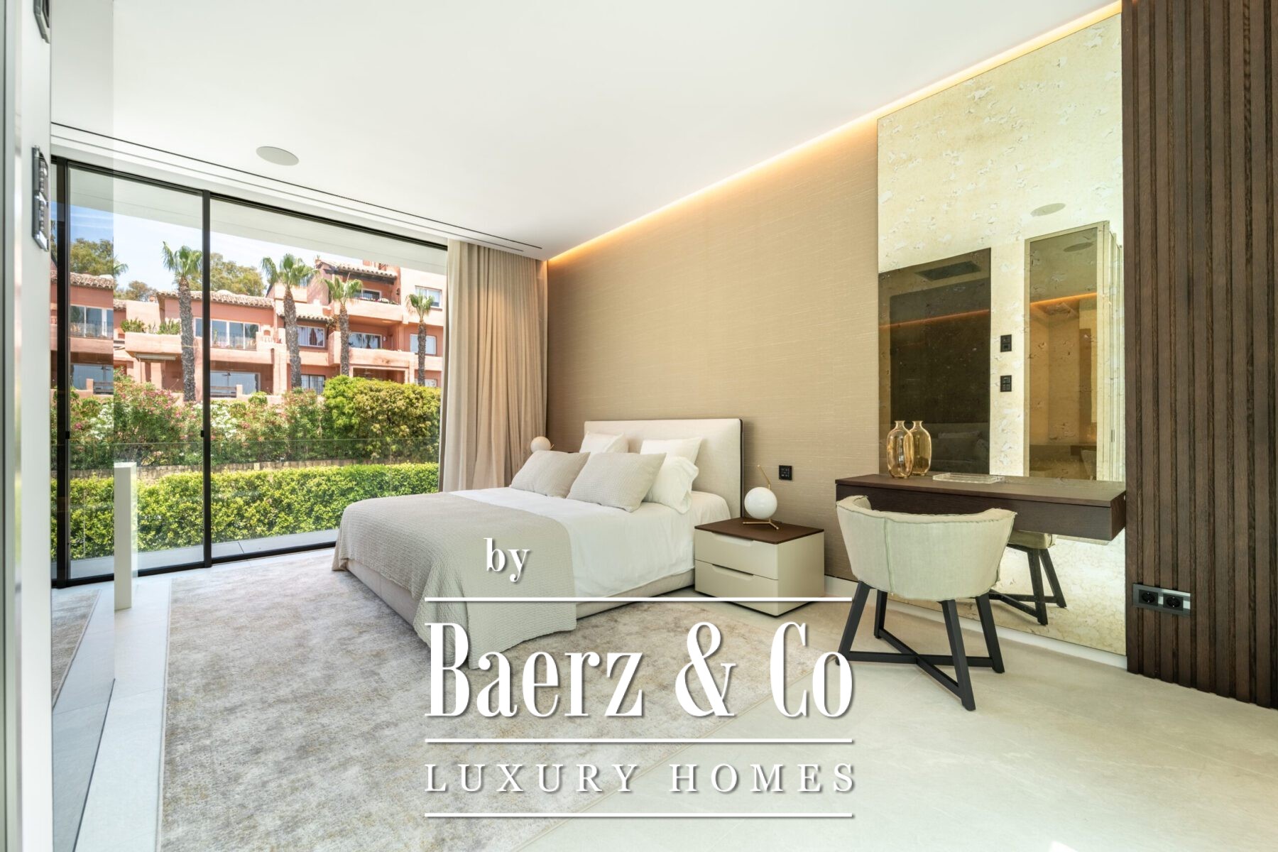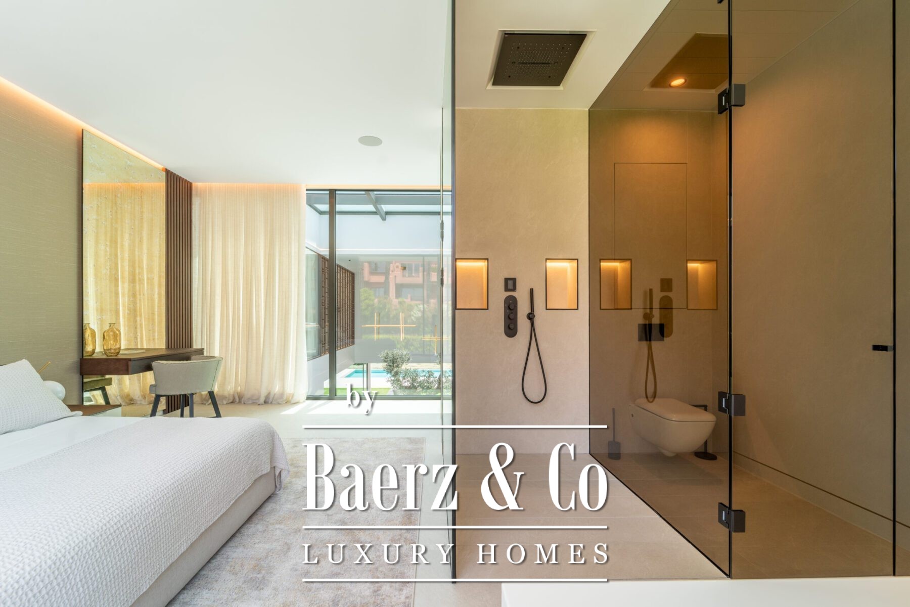 整座别墅精致考究,设有五间带独立卫浴的卧室与五间浴室,每一空间皆为融合安达卢西亚明媚光线与地中海海景而量身设计。底层空间宽阔,包括宽敞的起居与餐饮区,直通露台,全配厨房联通私家庭院与两座独立泳池。楼上每间卧室均配有专属露台,主卧独享宽敞更衣间与俯瞰黄金一英里的广阔海景。