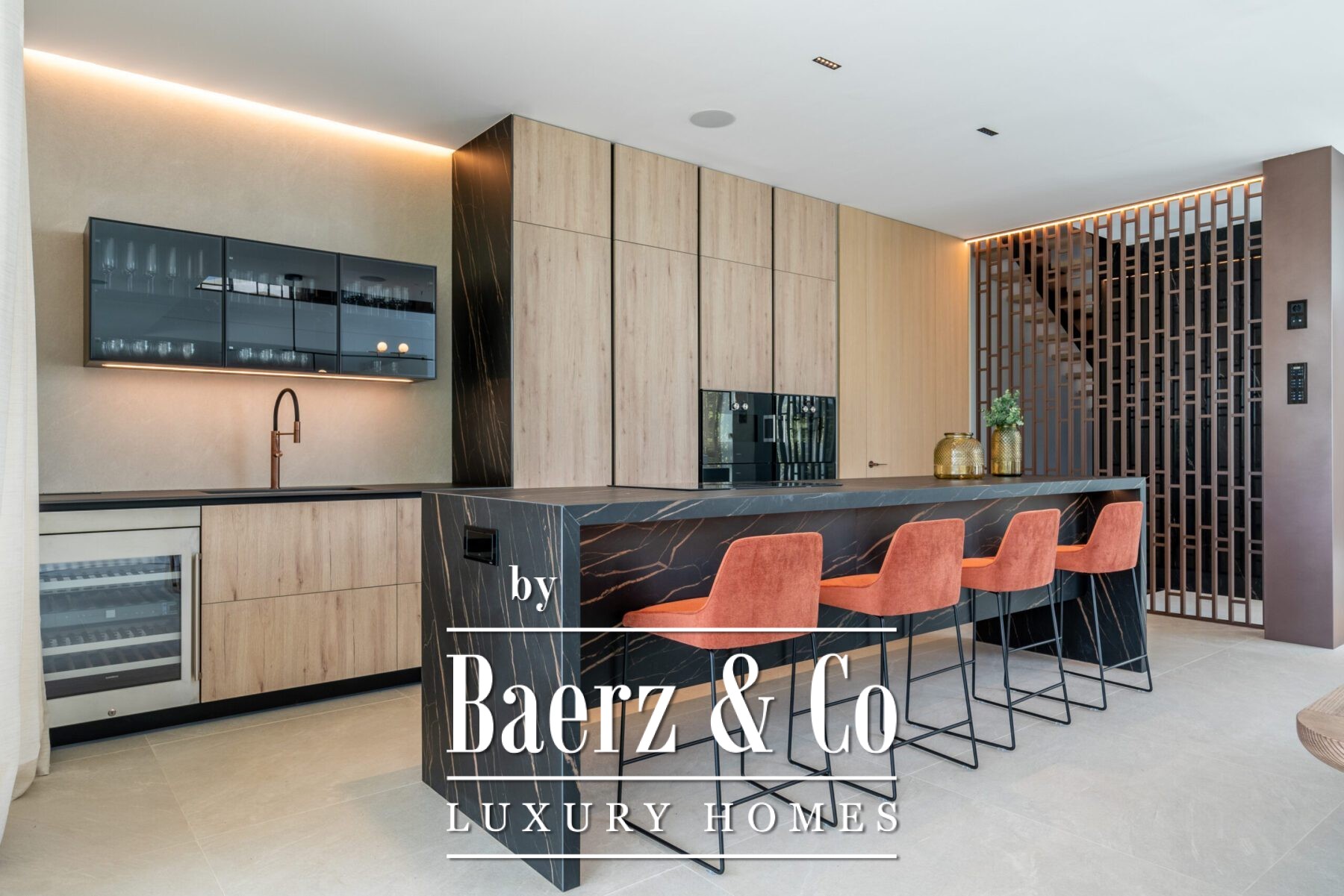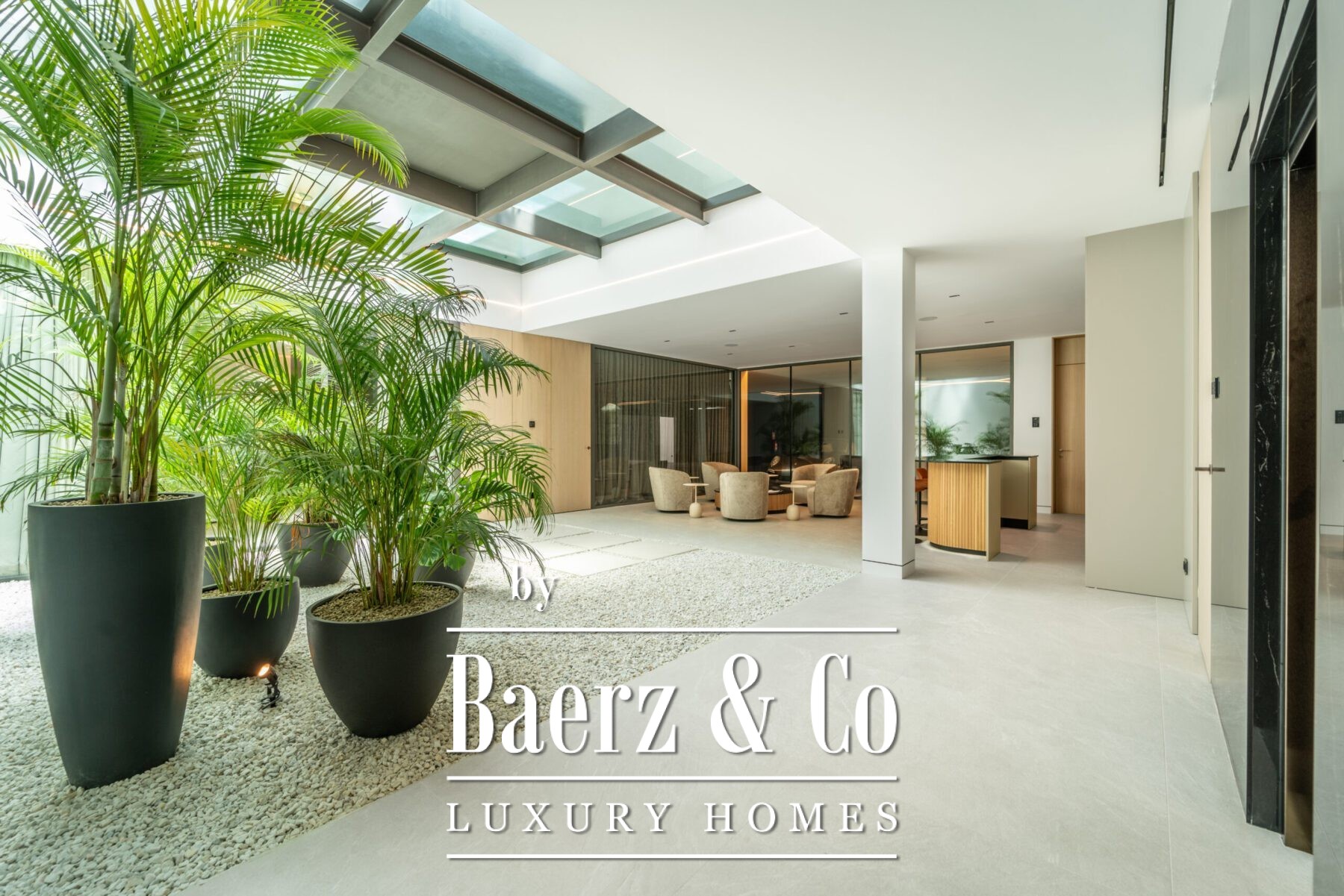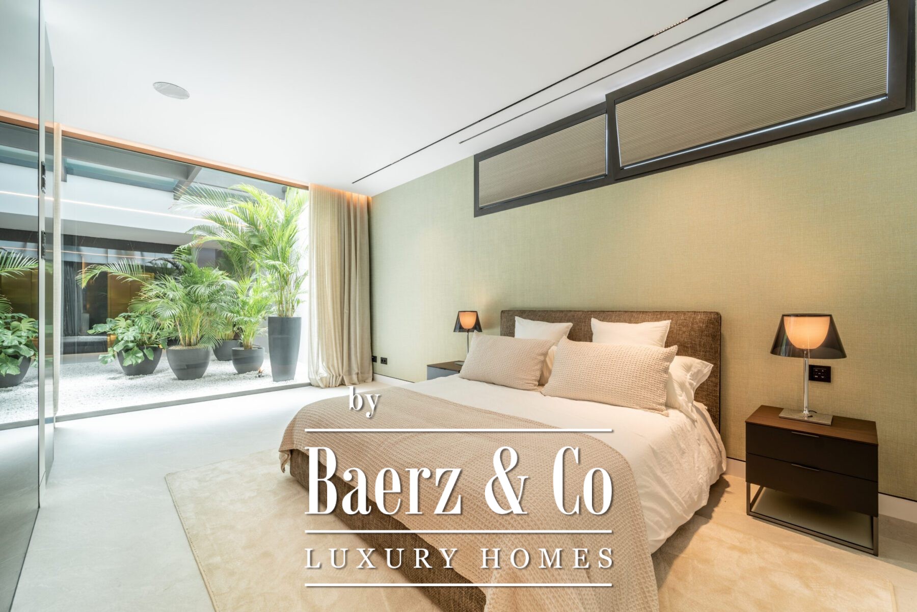 100平方米的屋顶日光露台专为全景餐饮、泳池及静谧休憩区而设,是品味Marbella地标性日落的理想场所。地下层配备家庭影院、健身房及多功能娱乐空间,并设有酒吧、迎宾区、洗衣房及可容纳八辆车的车库,轻松满足社交与娱乐需求。安防与舒适度由报警系统、电梯、空调、地暖与壁炉等设施悉心保障。