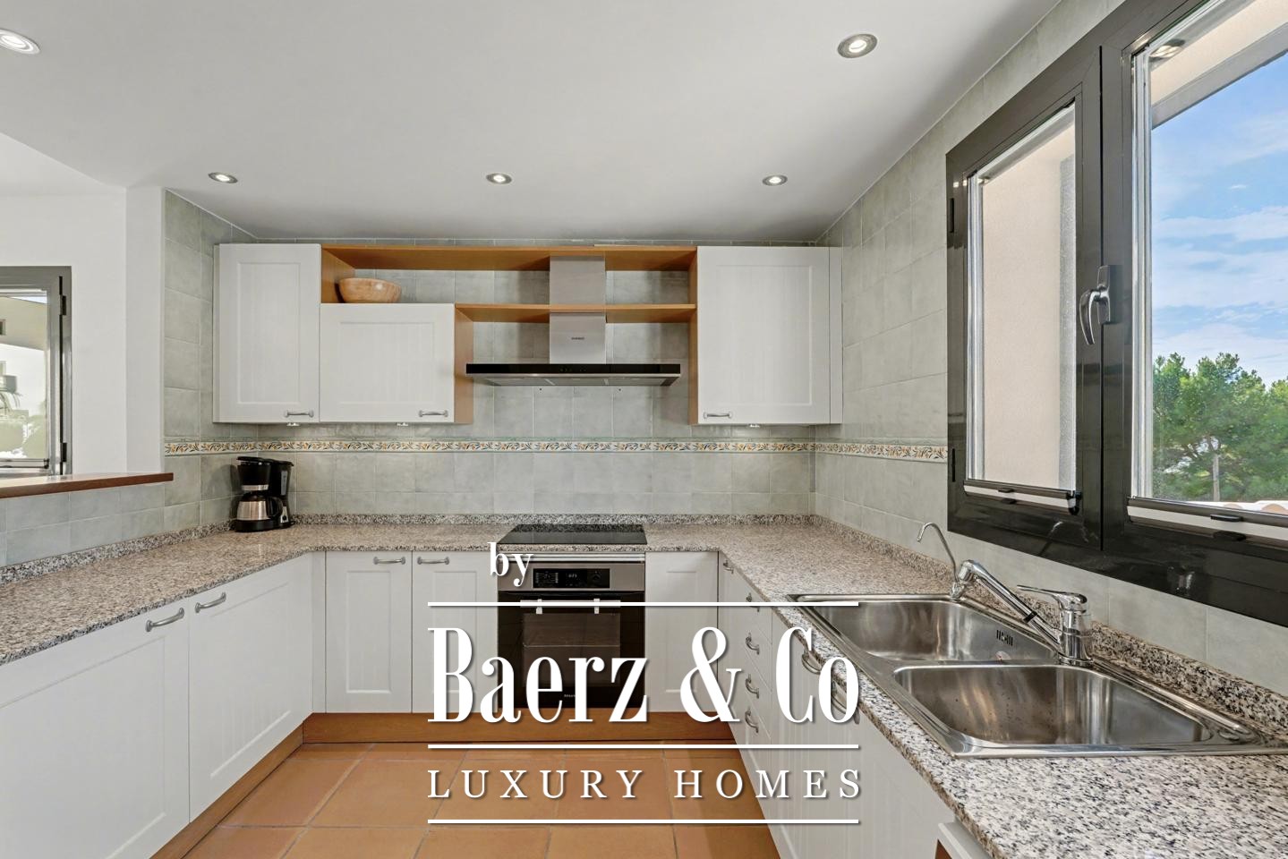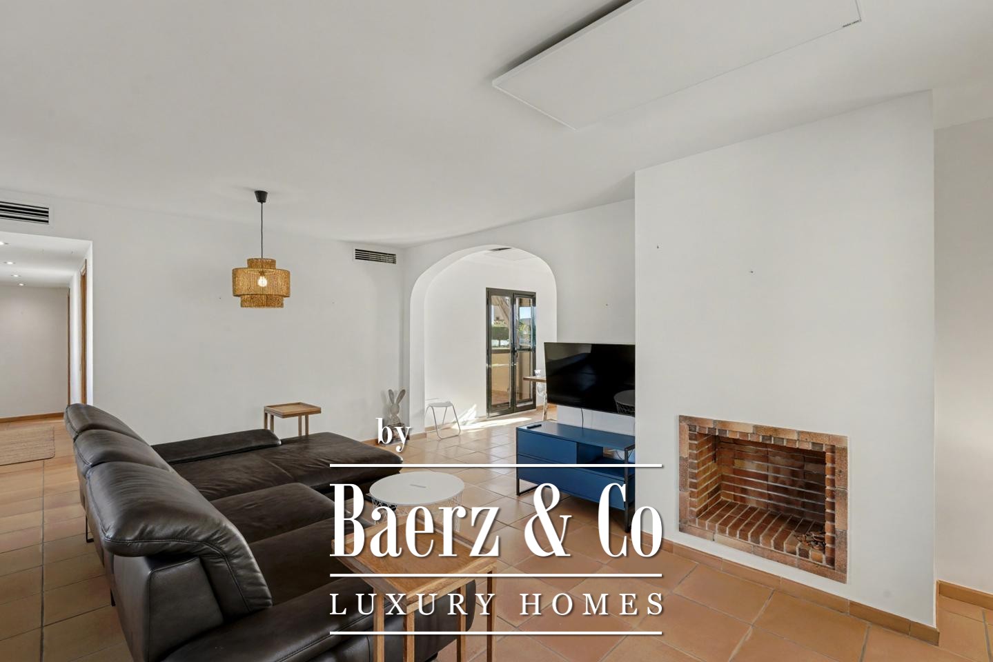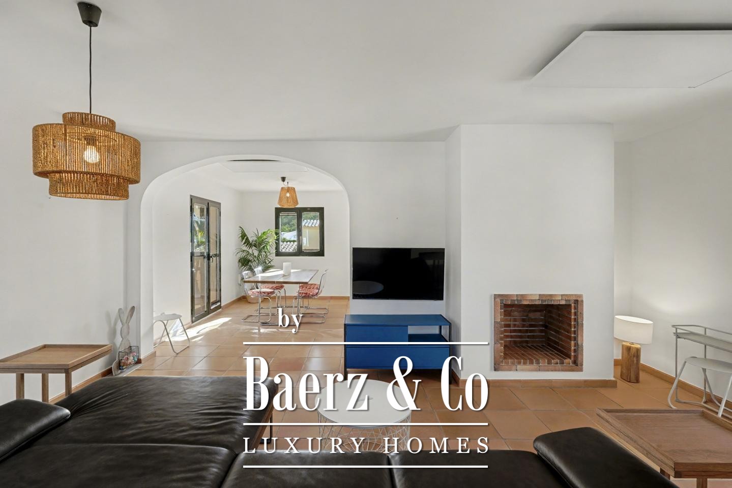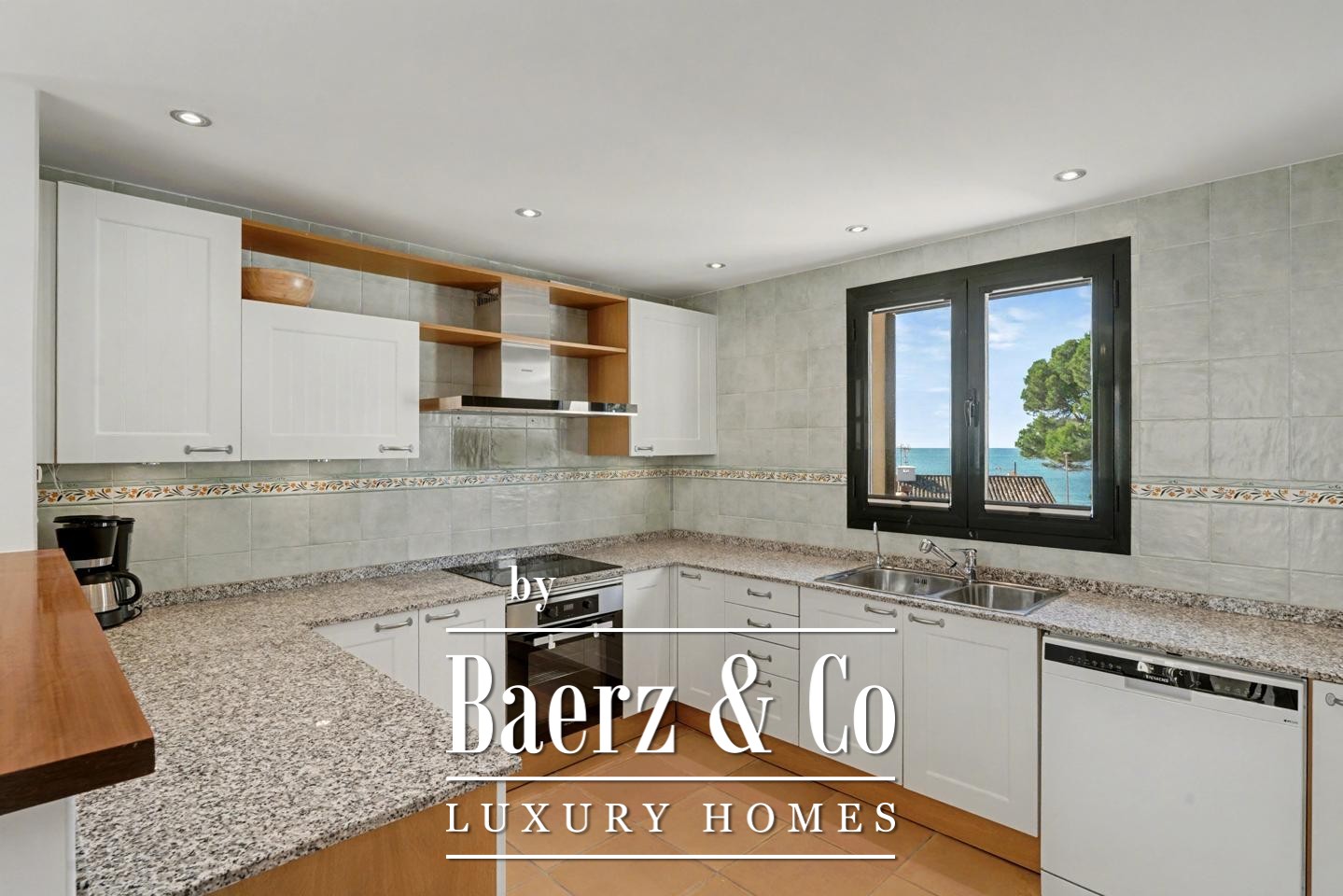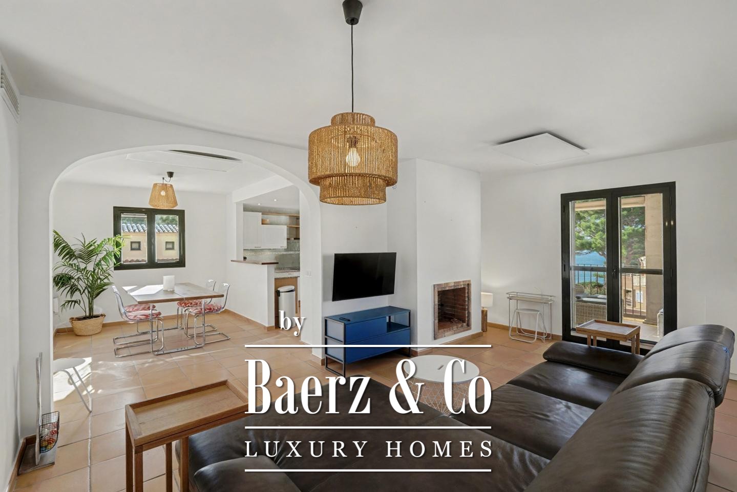 宽敞的门厅引领您步入精致明亮的内部空间。带壁炉的客厅与露台相连,令海景始终陪伴在侧。开放式厨房与餐区顺畅延展至第二个露台,便于户外聚会;外部楼梯连接至公共地中海花园与泳池。