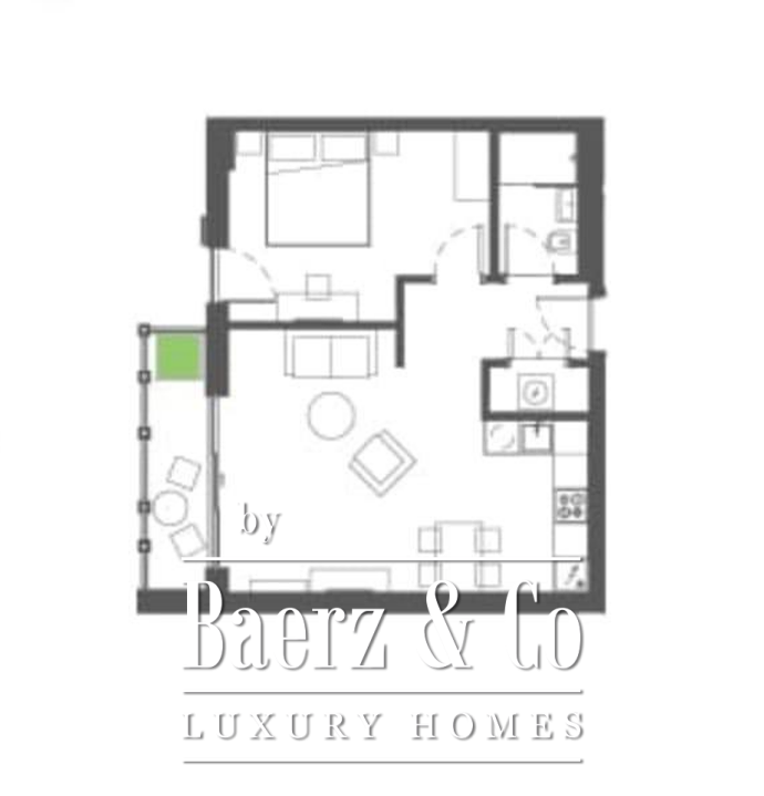 布局强调通透与静谧,玄关直通明亮的起居区域,配备现代化厨房与餐饮空间,一间卧室及设施完善的浴室。公寓全屋精装,即刻拎包入住,亦是高端出租投资的理想之选。整体采用简洁线条与充足采光,彰显当代居住氛围。