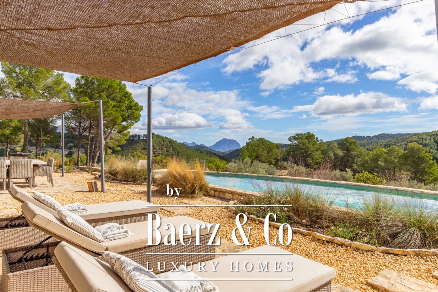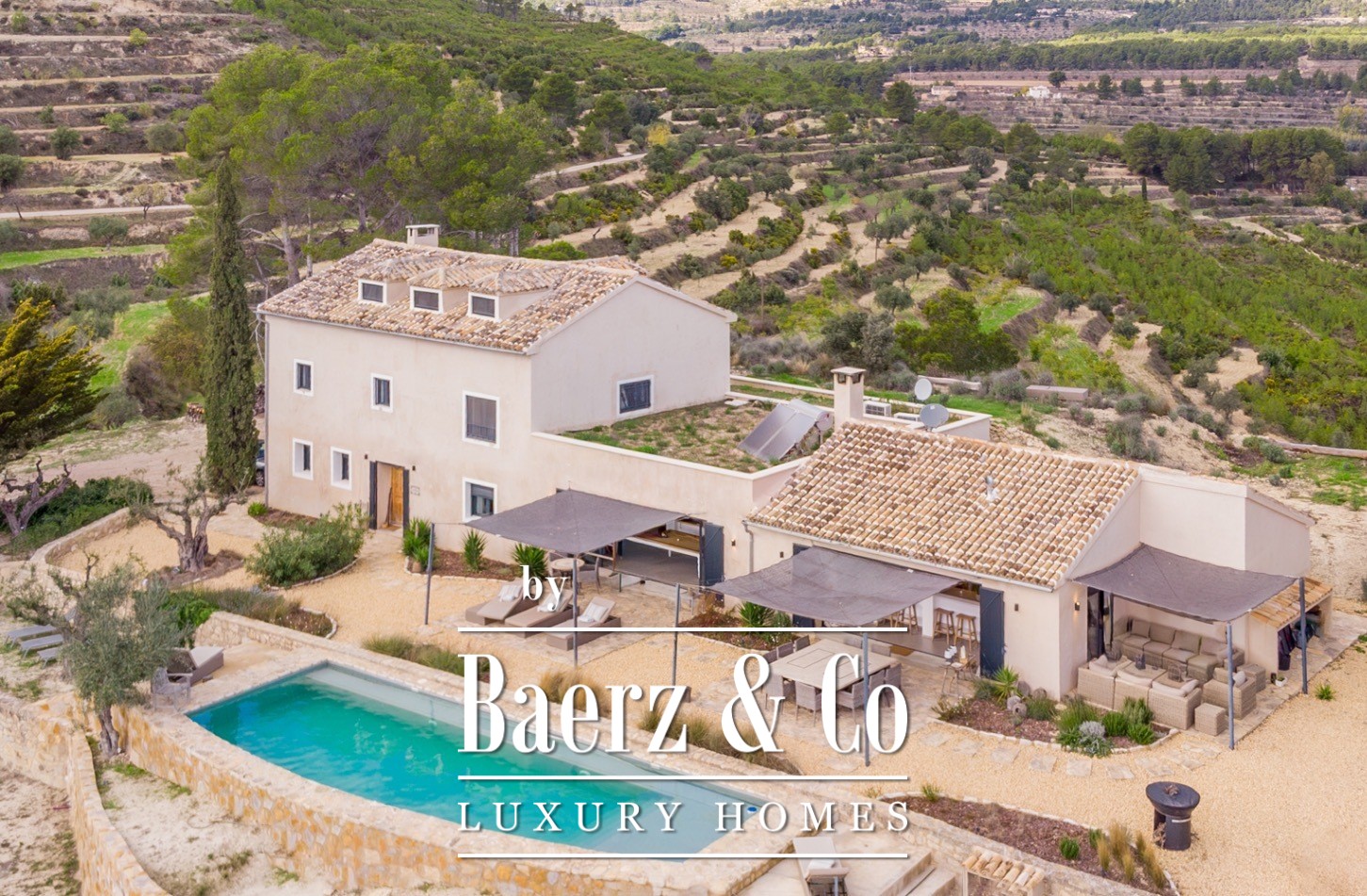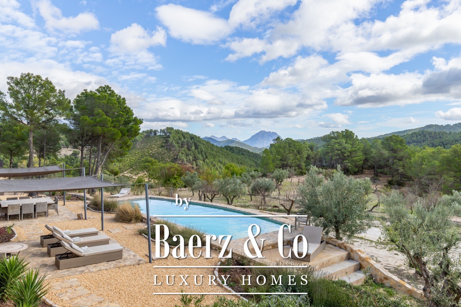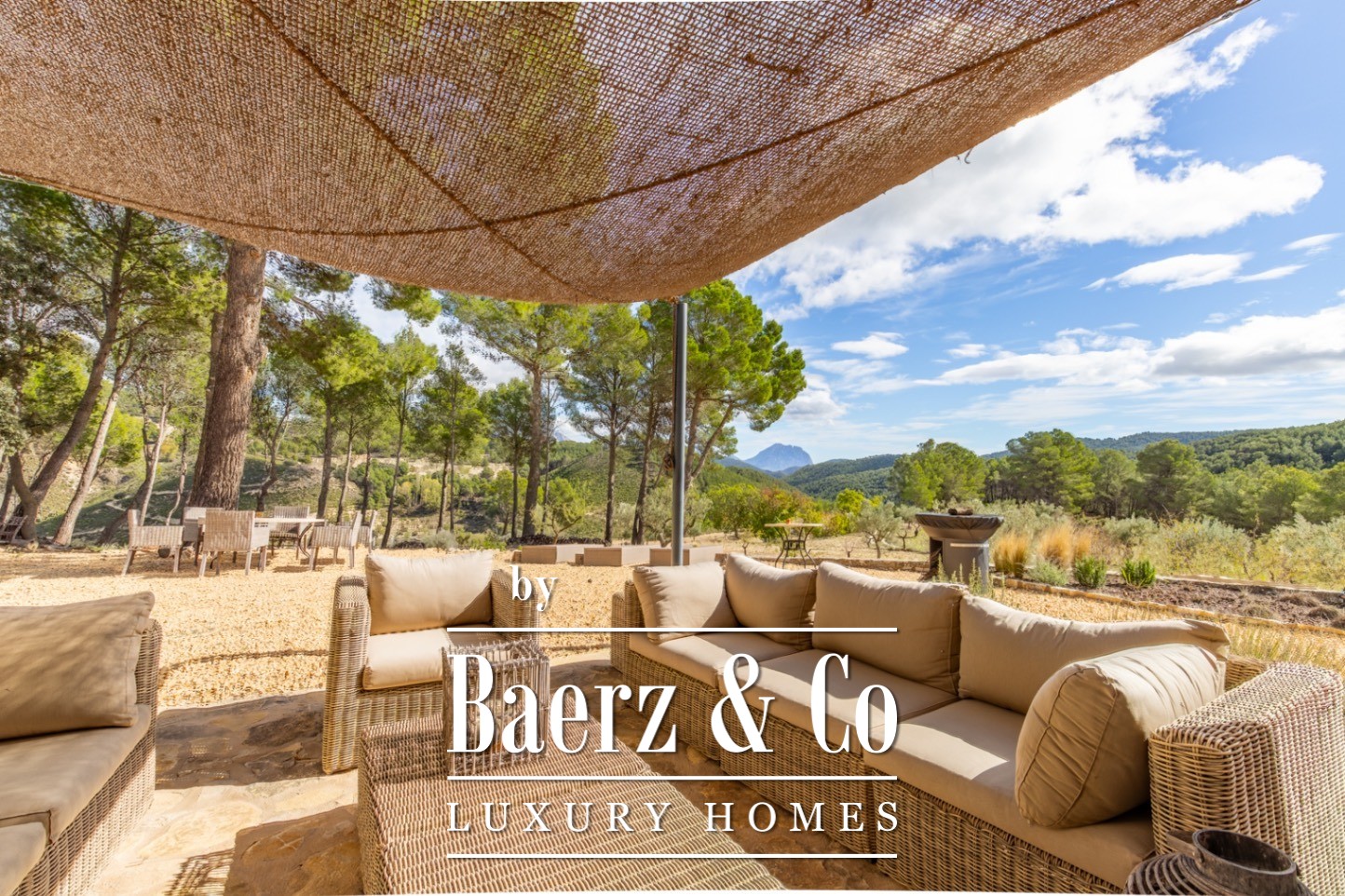 Torremanzanas庄园是西班牙内陆最宁静地区之一罕见的房产类型。庄园坐落于850米海拔的18公顷郁郁葱葱地中海风情土地上,距Torremanzanas村仅3公里,享有Puig Campana的全景美景。主楼面积450平方米,于2022年精心翻新,现代高端工艺与地中海本色和谐相融。每个生活空间均明亮、精致低调,并延伸至橄榄、杏仁和核桃树点缀的自然风光中。