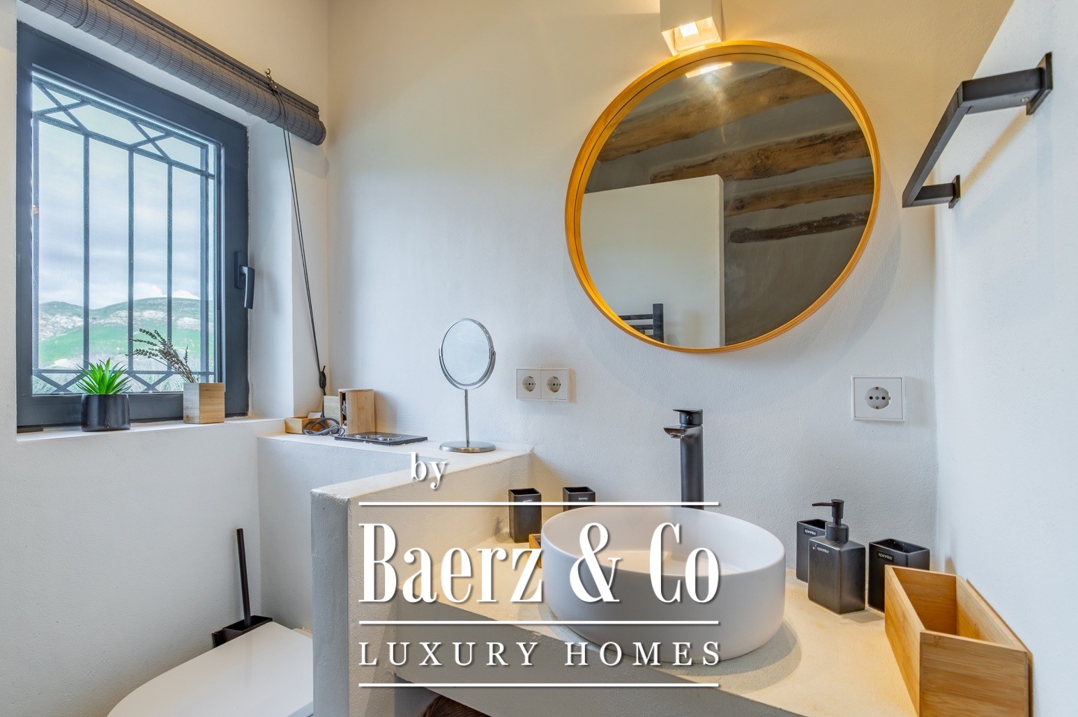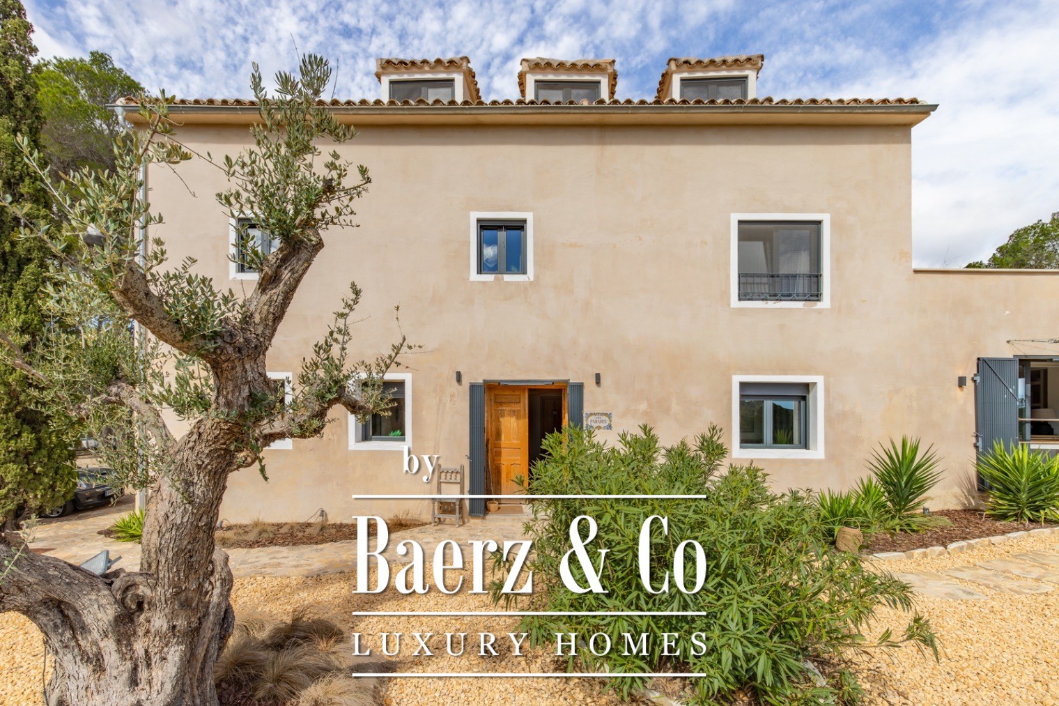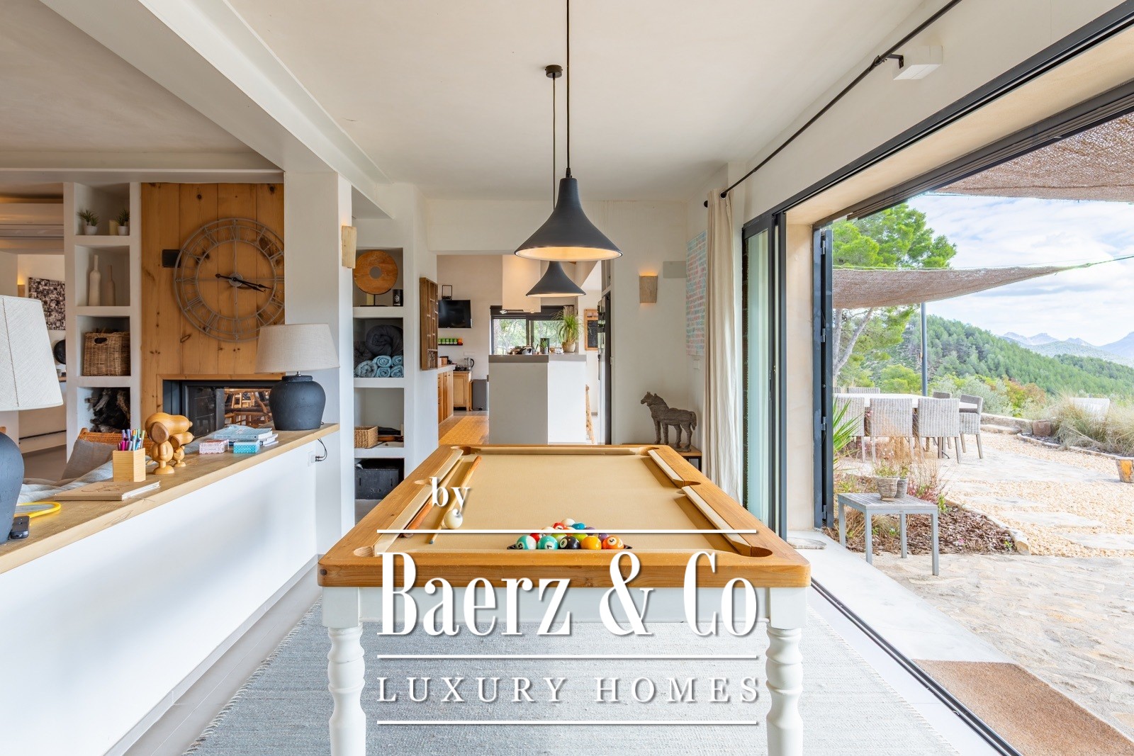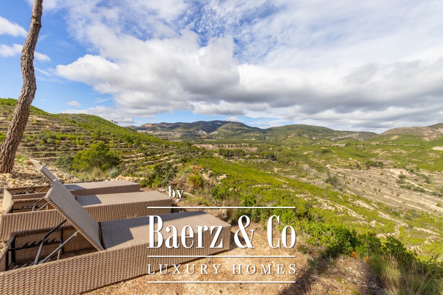Torremanzanas庄园是西班牙内陆最宁静地区之一罕见的房产类型。庄园坐落于850米海拔的18公顷郁郁葱葱地中海风情土地上,距Torremanzanas村仅3公里,享有Puig Campana的全景美景。主楼面积450平方米,于2022年精心翻新,现代高端工艺与地中海本色和谐相融。每个生活空间均明亮、精致低调,并延伸至橄榄、杏仁和核桃树点缀的自然风光中。
