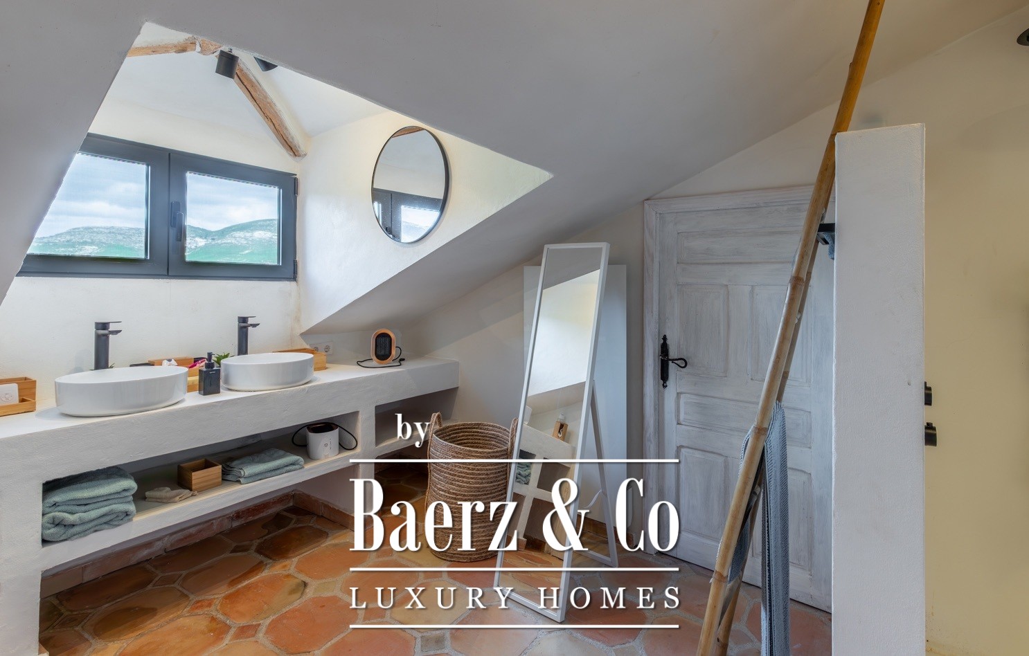 七间卧室和五间浴室保障舒适与私密,包括两间套房及额外室外浴室。厨房配备Miele与Smeg电器。充足光线洒落宽阔露台,大型加热泳池和全方位围栏区域营造出安心与宁静氛围。庄园基础设施真正实现自给自足,包括21,500升天然泉水储存、35块太阳能板搭配先进锂电池,以及23 kVA应急发电机。